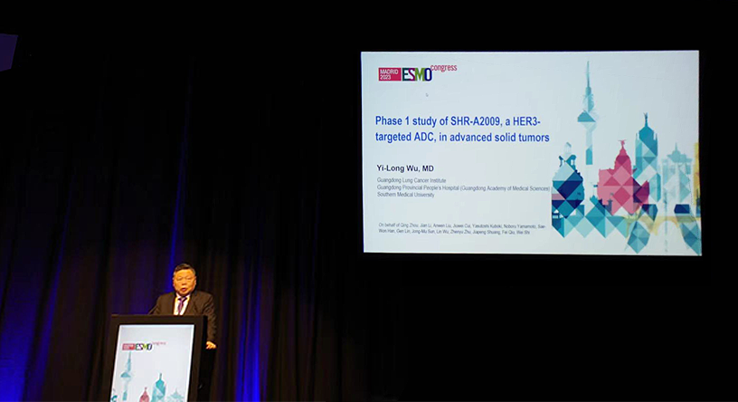 10月23日,东升国际医药创新药、HER3靶向ADC药物SHR-A2009治疗晚期实体瘤的I期研究亮相2023 ESMO大会简短口头报告现场5。该研究由广东省人民医院的吴一龙教授牵头开展,吴一龙教授在现场公布该研究的重要进展。研究结果显示,SHR-A2009在经治晚期实体瘤患者中显示出可控的安全性和令人鼓舞的抗肿瘤活性。目前评估更高剂量的SHR-A2009在选定癌症类型(NSCLC和其他实体肿瘤)中作用的试验正在进行中。