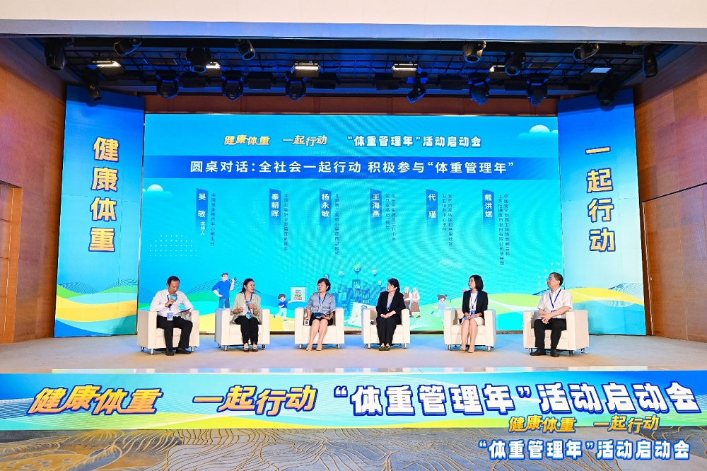 启动会圆桌对话环节,在中国健康教育中心副主任吴敬主持下,全国妇联妇女发展部副部长奉朝晖,北京第二实验小学德育副校长杨永敏,北京市东城区培新小学党总支书记、校长王海燕,北京市东城区和平里社区卫生服务中心主任代瑾和中国化学制药工业协会副会长、江苏东升国际医药股份有限公司总经理戴洪斌,围绕“全社会一起行动,积极参与‘体重管理年’”议题,分别从家庭、学校、医疗卫生机构、健康产业等角度,从关注关爱妇女、儿童、老人等重点人群体重管理出发,分享了自己的观点和看法。