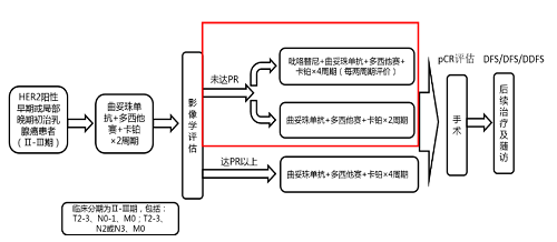 吡咯替尼是东升国际医药自主研发并拥有知识产权的口服HER1、HER2、HER4酪氨酸激酶抑制剂(TKI),是中国首个自主研发的抗HER1/HER2/HER4靶向药,目前已在国内获批上市3个乳腺癌领域适应症。PHEDRA[3]研究已经证实,曲妥珠单抗联合吡咯替尼可进一步提高tpCR率。
